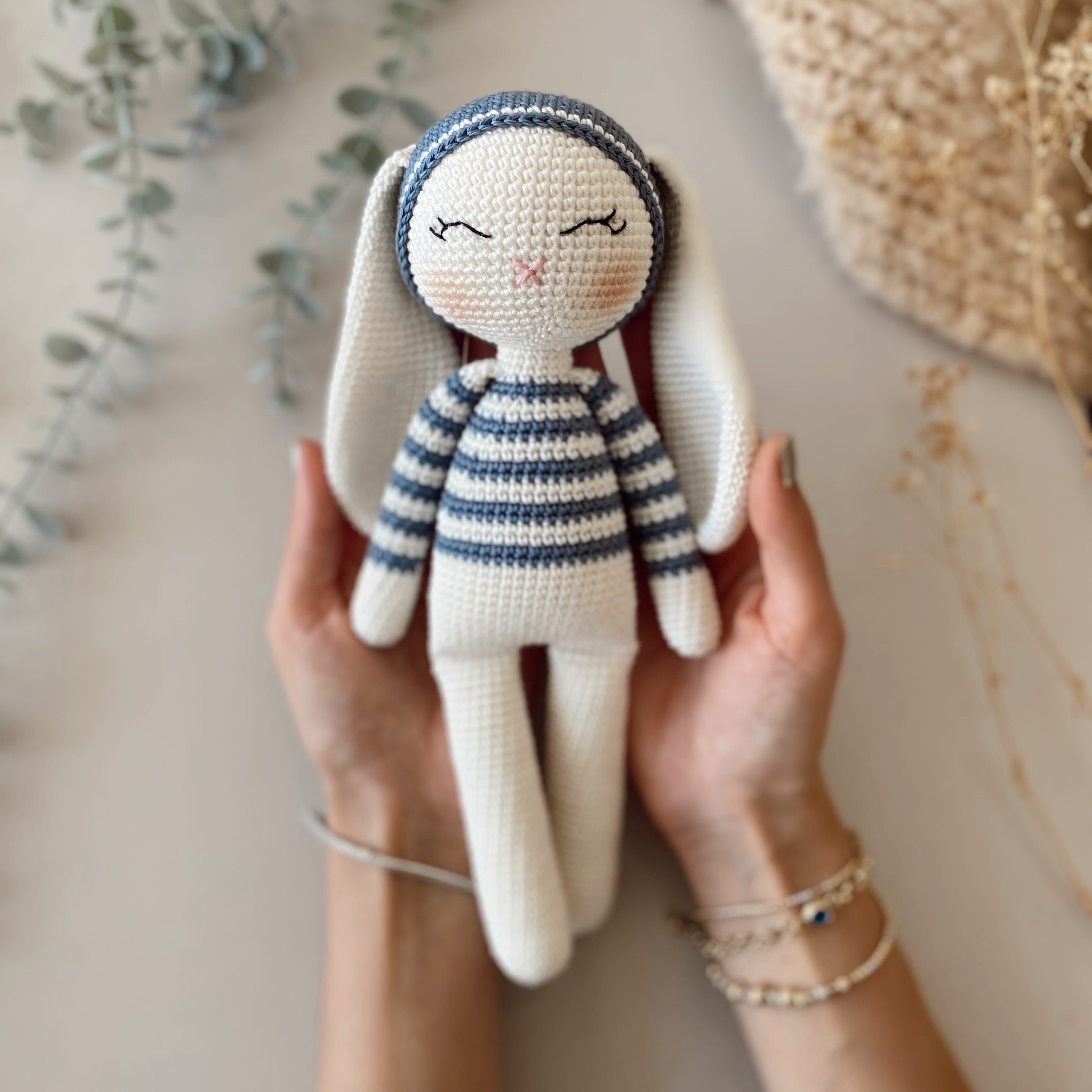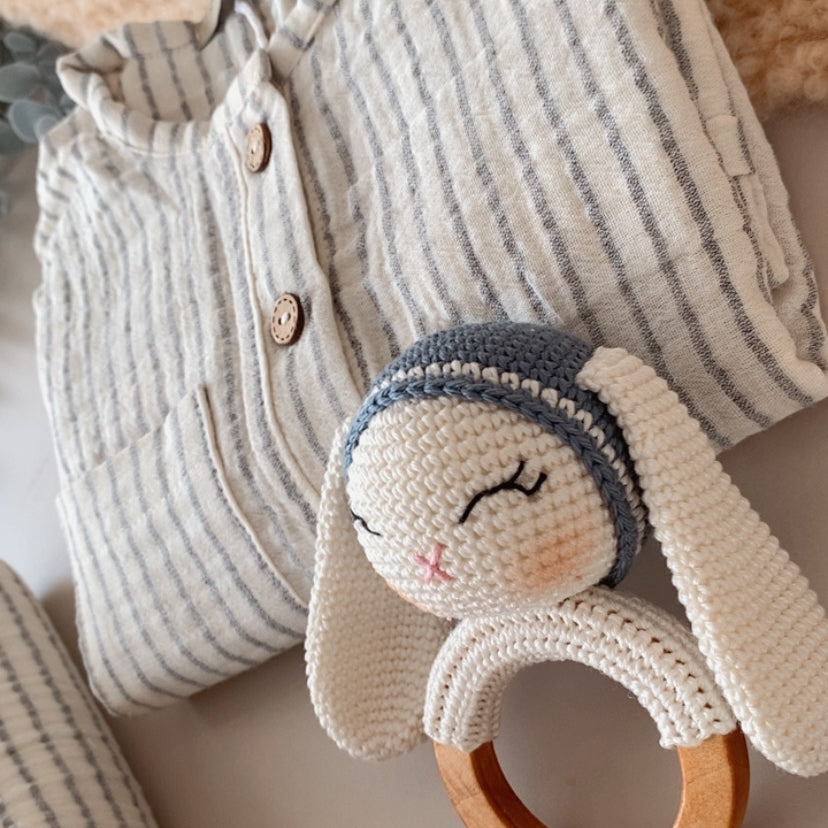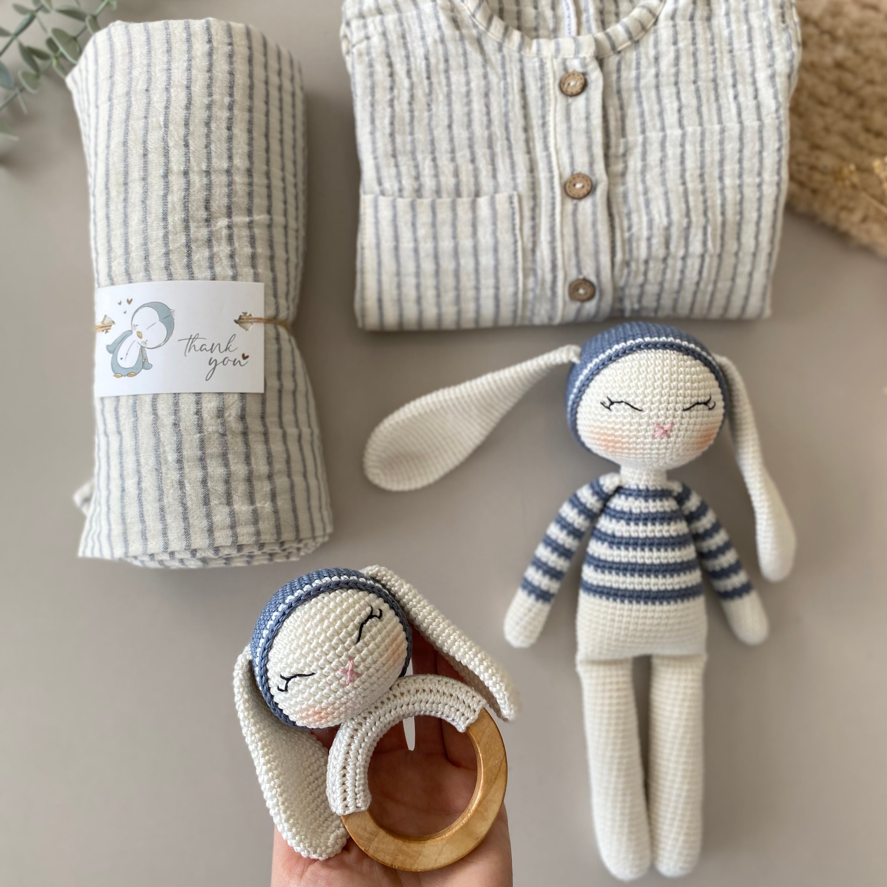 Amigurumi 4 Parça Çizgili Tavşan Deluxe Bebek Seti