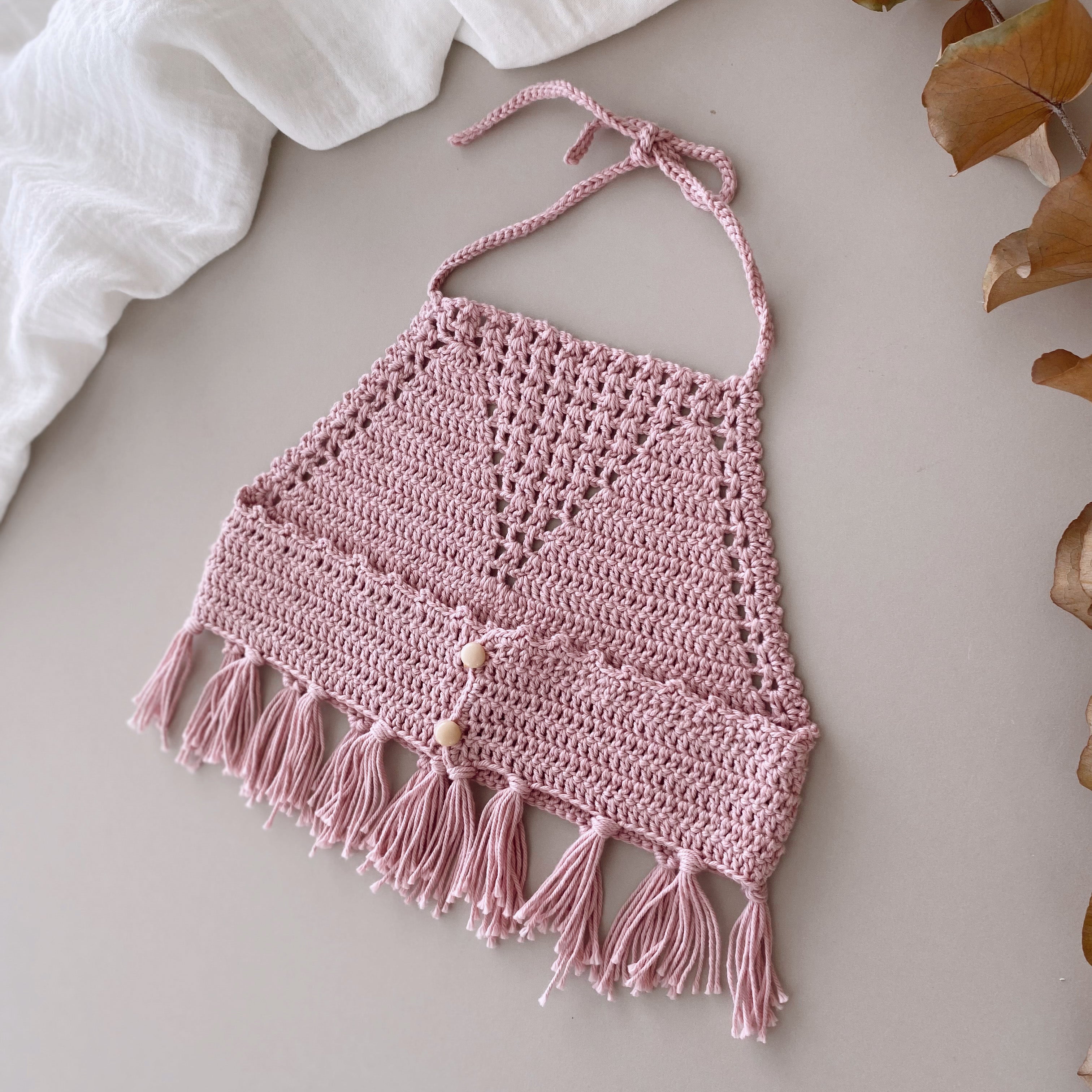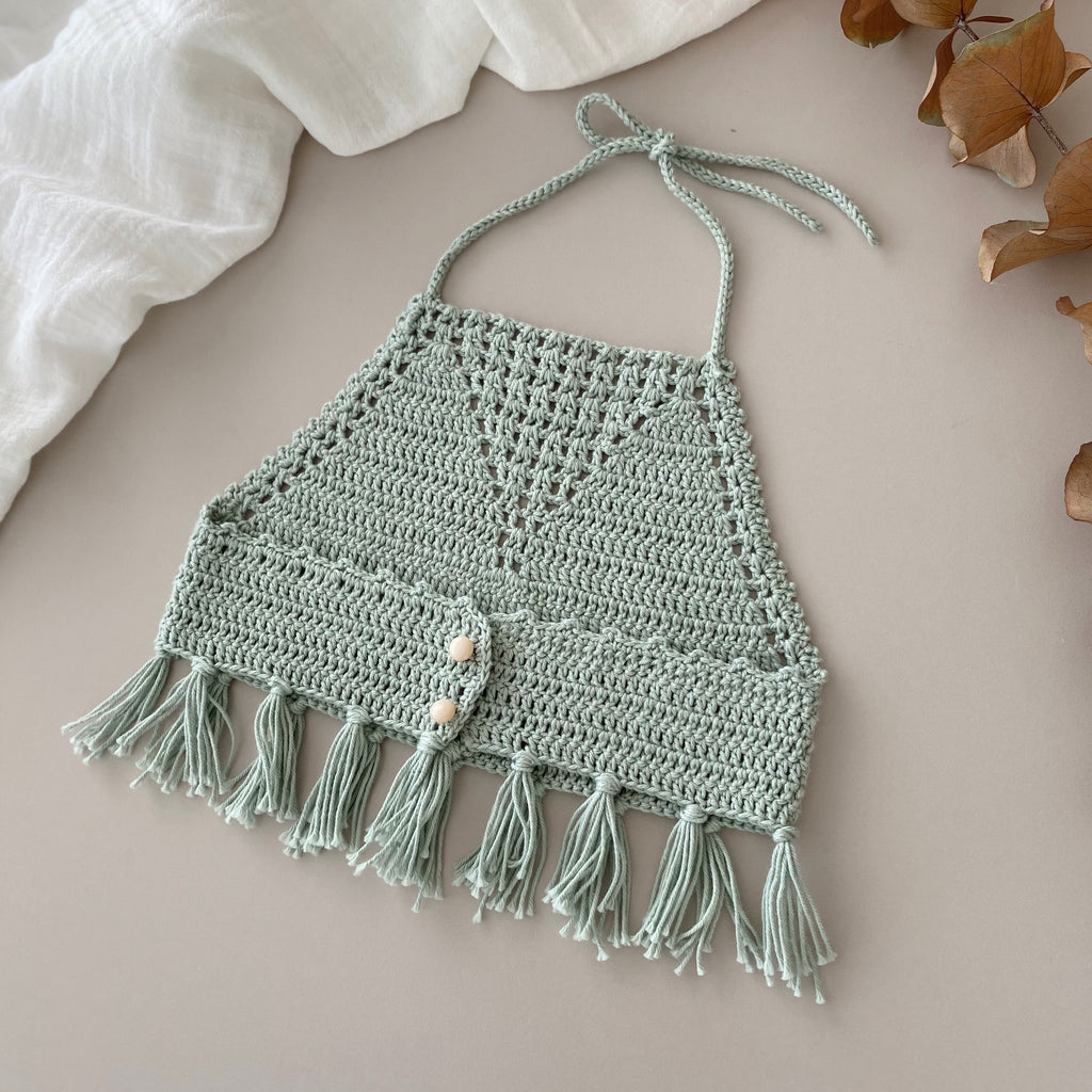 Crop el örgüsü büstiyer ve beli lastikli şorttan oluşur